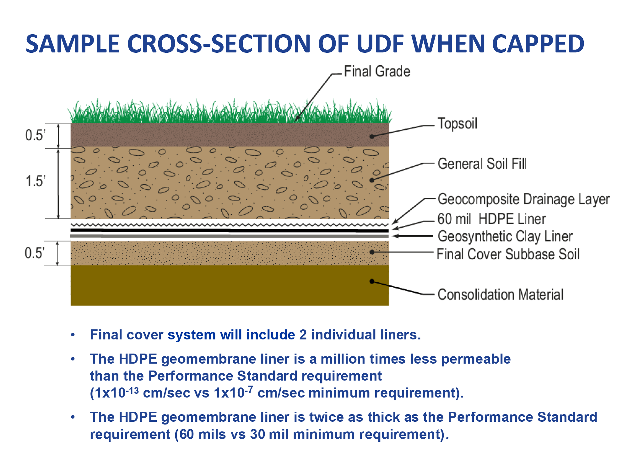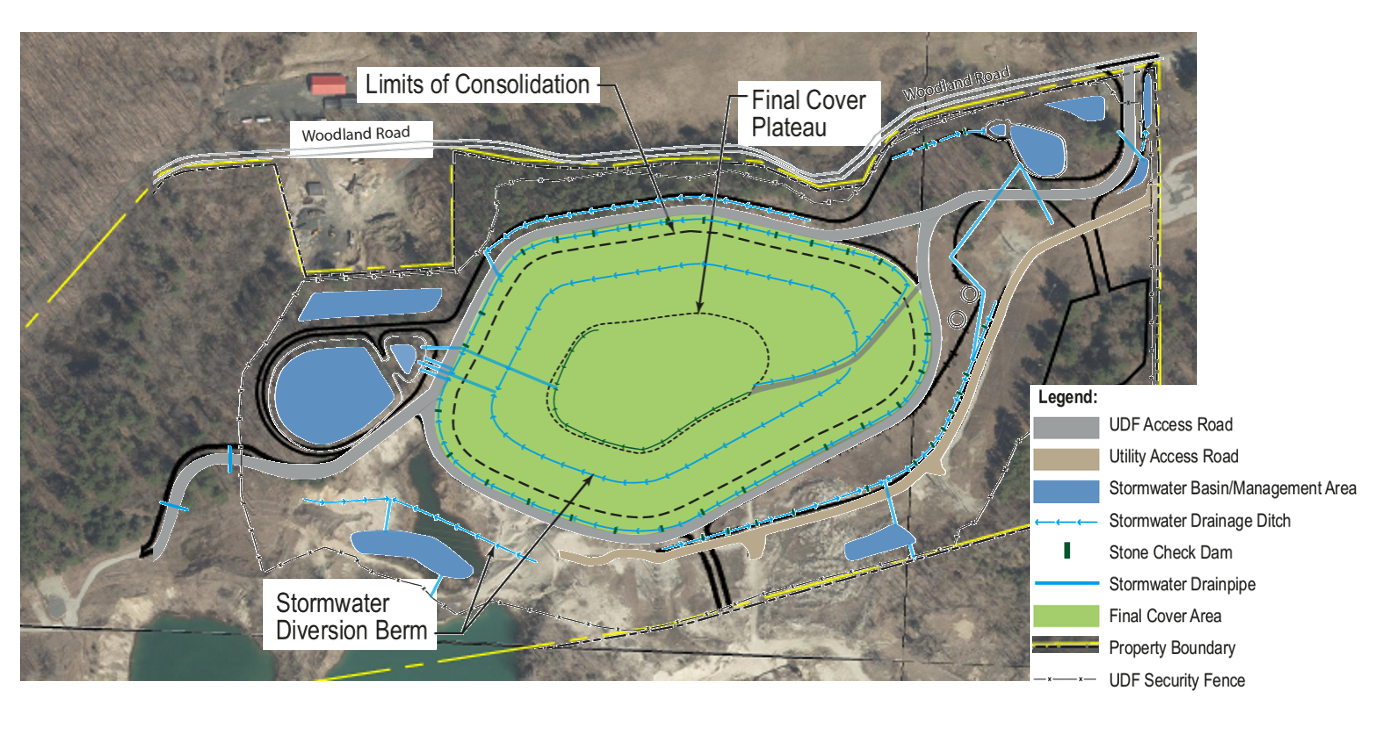 When finished, the UDF will be capped and vegetated. A regular schedule of post-closing inspection and maintenance, including groundwater monitoring, will be established with U.S. EPA approval. These inspection activities will be ongoing to ensure that the UDF is meeting all performance requirements and specifications. Inspection and monitoring reports, like other project documents, will be submitted to the U.S. EPA and available for public review.