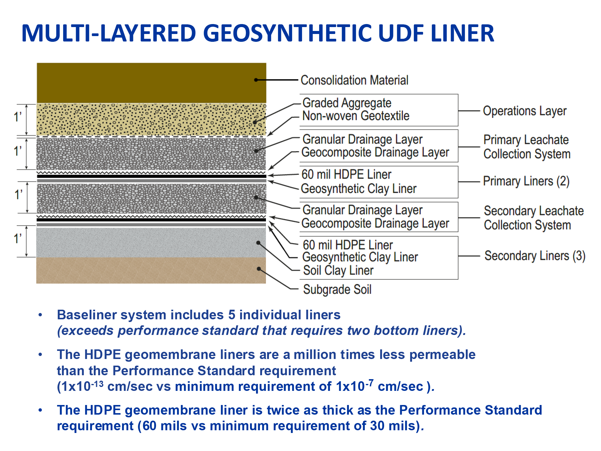 The landfill is being designed with redundant safety features that include clay layers, multiple high-density polyethylene liners, drainage layers and leachate water collection and treatment. It will accept a maximum of 1.3 million cubic yards of lower-PCB concentration sediments and soils. Material with higher PCB concentrations will be safely transported to a U.S. EPA-approved disposal facility or facilities outside of Massachusetts.